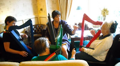 Our travelers included two harp players, one fledgling (a person who was going to learn the harp as we went along and an audience member (the lucky devil who was going to listen to us play!). We arrived at Scone and the weather cooperated, letting up a bit so we could get inside to see the incredible displays (as well as doing a little shopping and having some lunch). We then went to Pitlochry to see the Dam and the Fish Ladder – again the weather held! We finished the day by heading to our accommodation, getting quickly settled in our rooms and rejoining to play the harp. We worked through Brig of Perth and got it down, despite a little remaining jet lag!